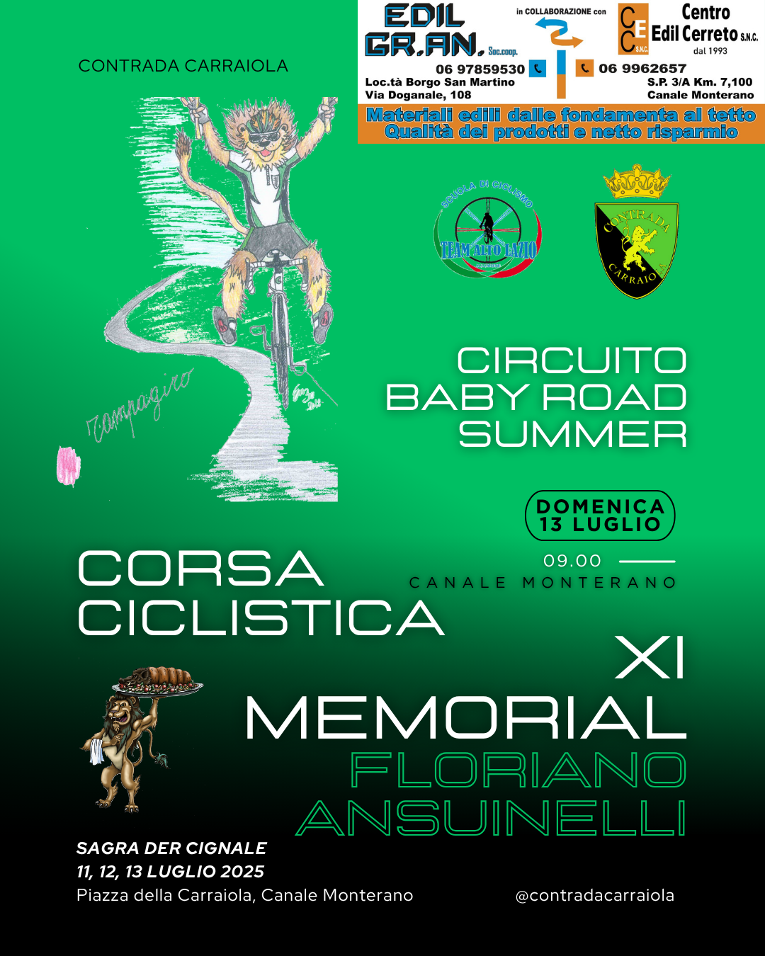 ore 9.00 XI Memorial Floriano Ansuinelli. Corsa ciclistica riservata ai bambini. Trofeo Monarca Enrico. Trofeo Monarca Elia